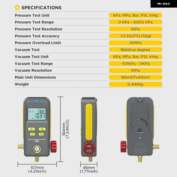 PRESSURE TEST UNIT:KPA; MPA; BAR; INHG; PSI.