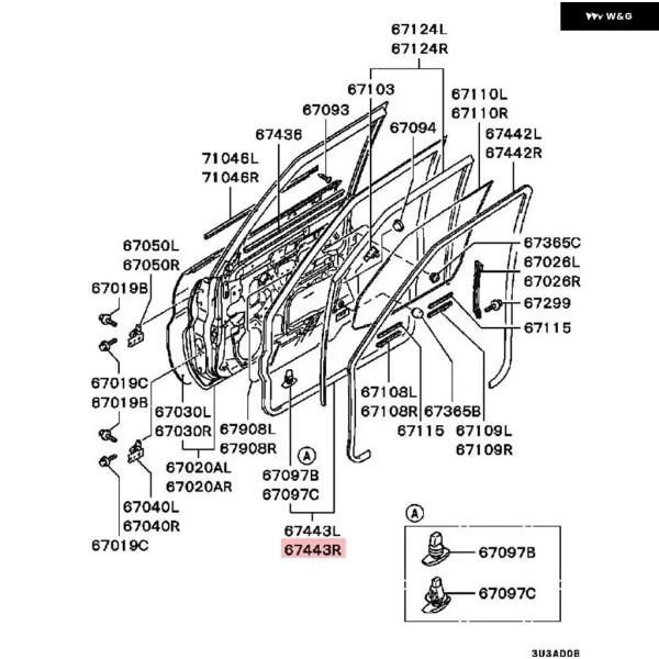 5ドアドア ゴムシール パジェロ ピニン H60 H70 MR351386ドア オープニングポスト モンテロ ミニアウトラバー ショーグンIO - right front
