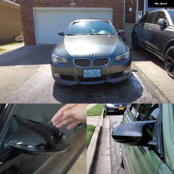 カーボンファイバースタイルブラックバックミラーサイドミラーカバーキャップオーバーレイ BMW E81 E82 E87 E88 E90 E91 E92 E93 M ルックカーアクセサリー