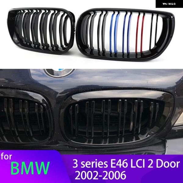 2個 スタイル 黒フロントキドニーダブルスラット グリル E46 クーペカブリオ 325CI 330CI LCI 2 ドア 03-06 アクセサリー