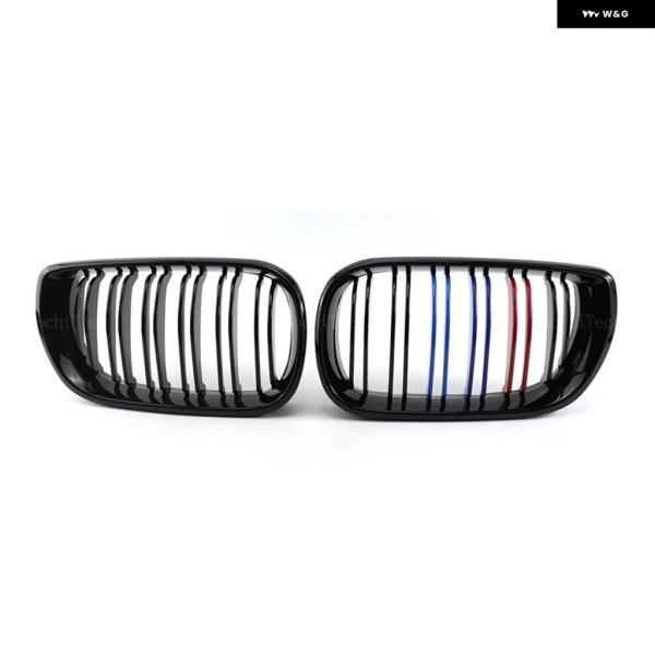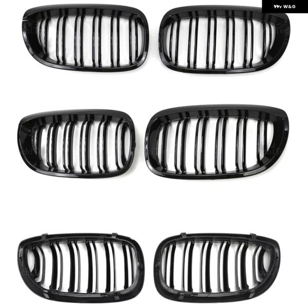 2個 スタイル 黒フロントキドニーダブルスラット グリル E46 クーペカブリオ 325CI 330CI LCI 2 ドア 03-06 アクセサリー
