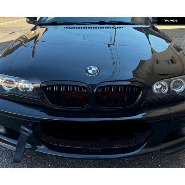 2個 スタイル 黒フロントキドニーダブルスラット グリル E46 クーペカブリオ 325CI 330CI LCI 2 ドア 03-06 アクセサリー - all black