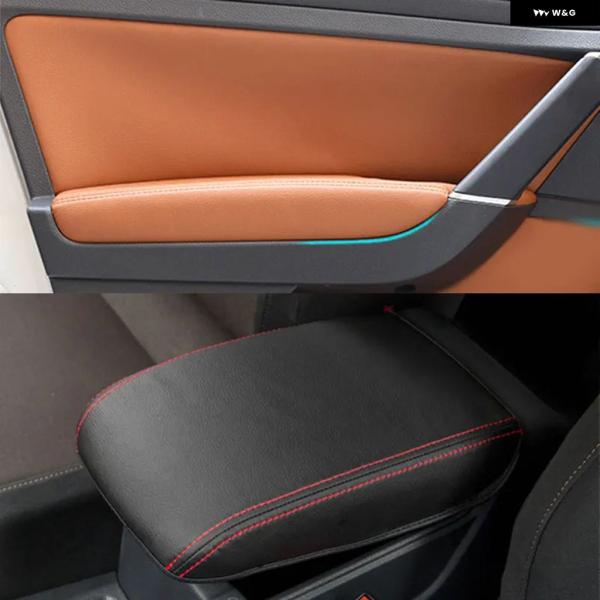 VW ゴルフ MK7 2014-18ドアハンドル パネル /センター コントロール アームレスト マイクロファイバーレザーカバー - center armrest B-R