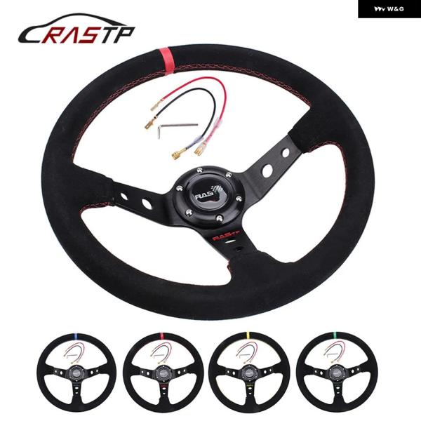 汎用 14インチ 350MM スエード カーレーシング ステアリングホイール ディープコーン ドリフトスポーツ ステアリングホイール RS-STW025
