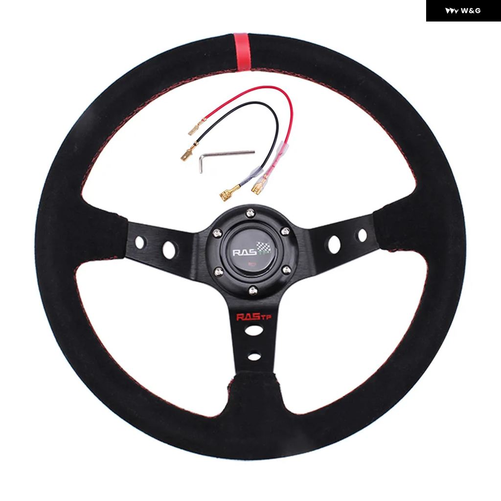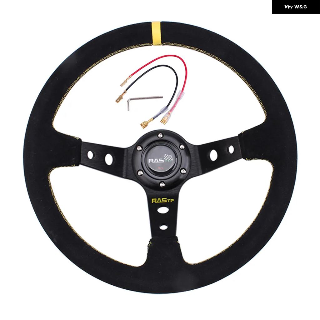 汎用 14インチ 350MM スエード カーレーシング ステアリングホイール ディープコーン ドリフトスポーツ ステアリングホイール RS-STW025