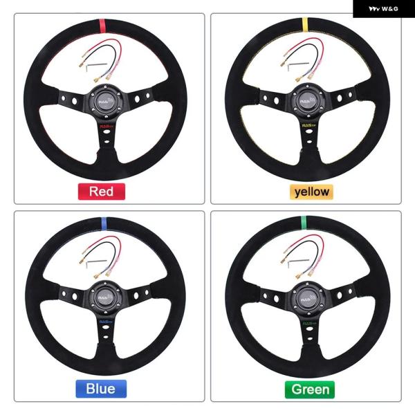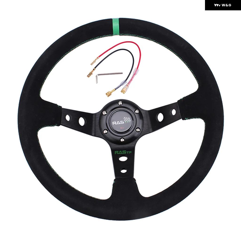 汎用 14インチ 350MM スエード カーレーシング ステアリングホイール ディープコーン ドリフトスポーツ ステアリングホイール RS-STW025 - Green