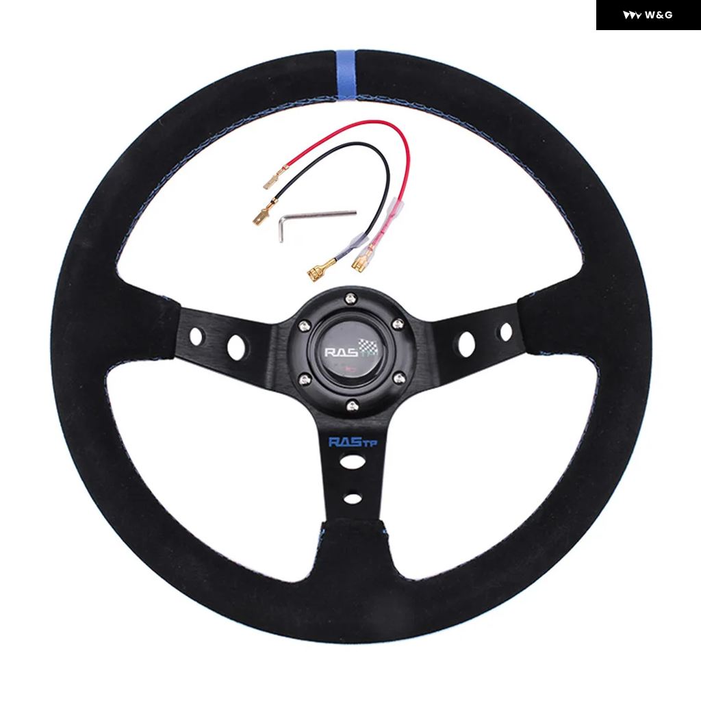 汎用 14インチ 350MM スエード カーレーシング ステアリングホイール ディープコーン ドリフトスポーツ ステアリングホイール RS-STW025 - Blue