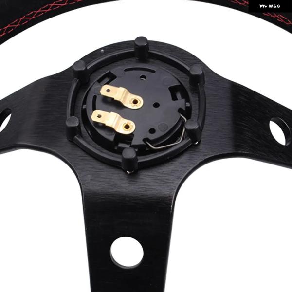 汎用 14インチ 350MM スエード カーレーシング ステアリングホイール ディープコーン ドリフトスポーツ ステアリングホイール RS-STW025 - Red
