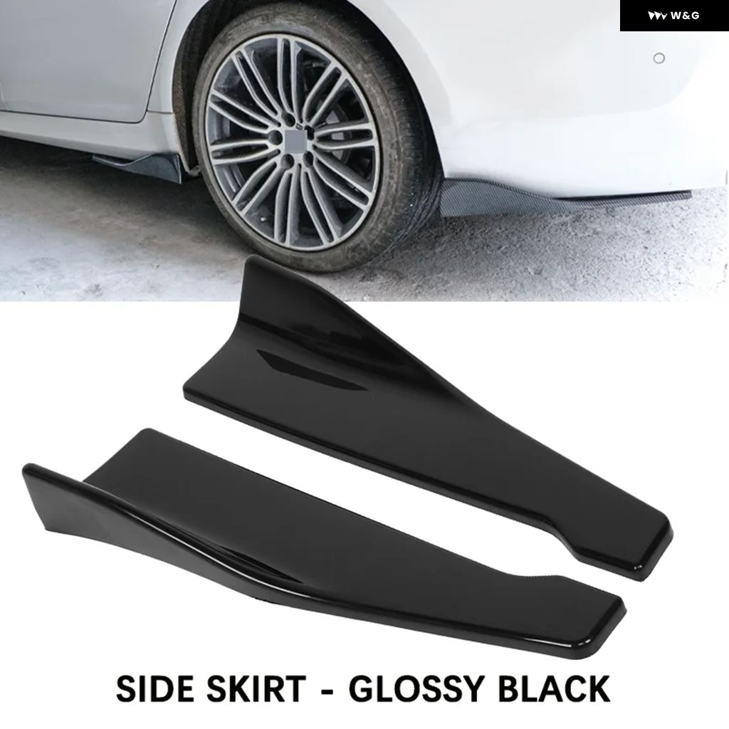 2PCS 汎用 カーリア バンパー スポイラー リップカーボンウィング トリム アンチ クラッシュ ディフューザー サイドスカートラップアングルスプリッター - Side Skirt BK