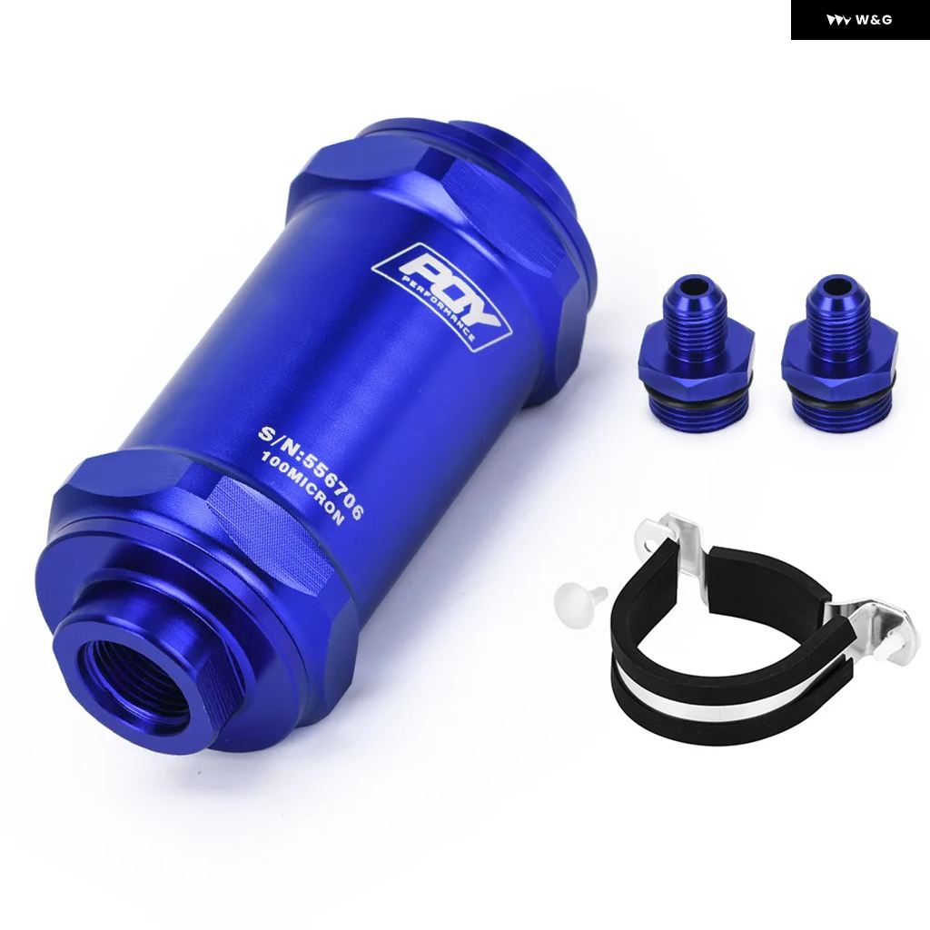LIZHI RACING - PQY ブラック AN6 / AN8 / AN10 インライン燃料 フィルター E85 エタノール 100ミクロン ステンレス エレメントとPQY ステッカー 付き - AN6 BLUE