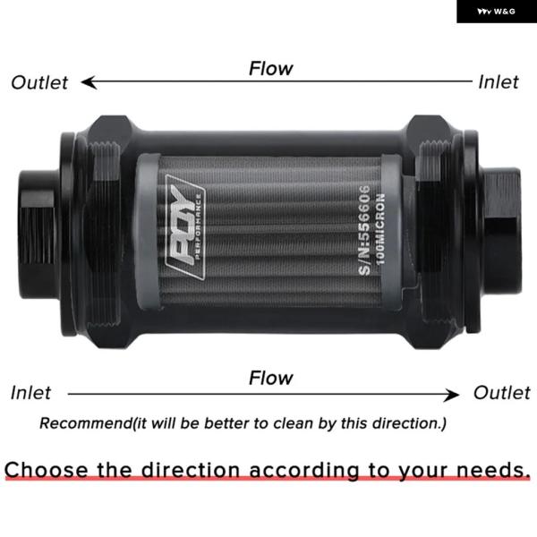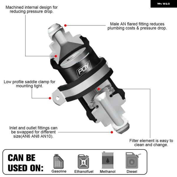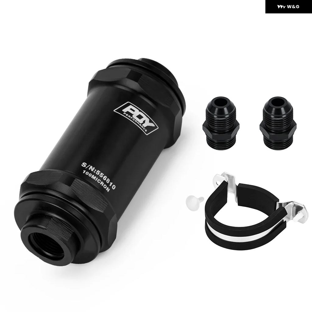 LIZHI RACING - PQY ブラック AN6 / AN8 / AN10 インライン燃料 フィルター E85 エタノール 100ミクロン ステンレス エレメントとPQY ステッカー 付き - AN8 FITTING