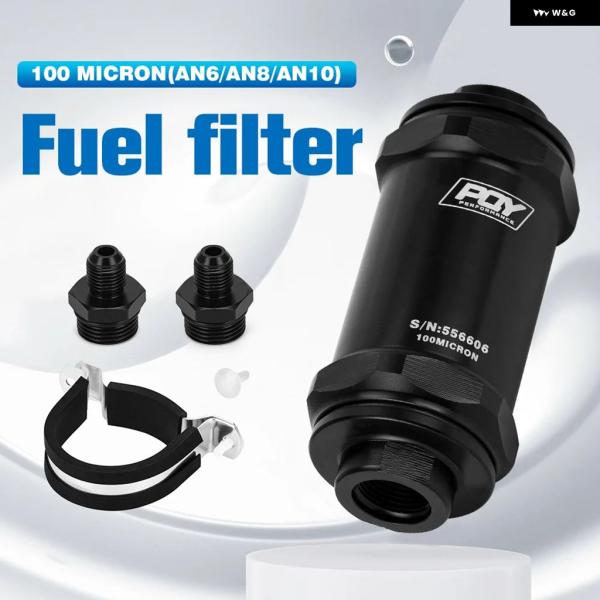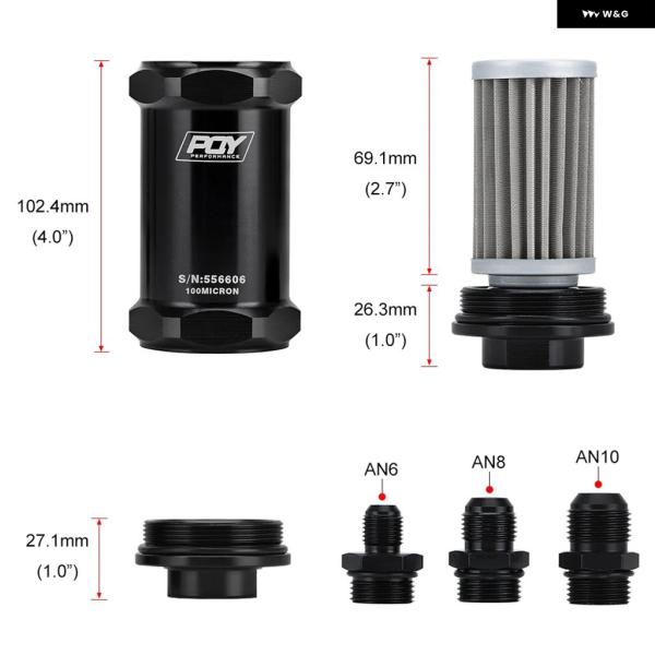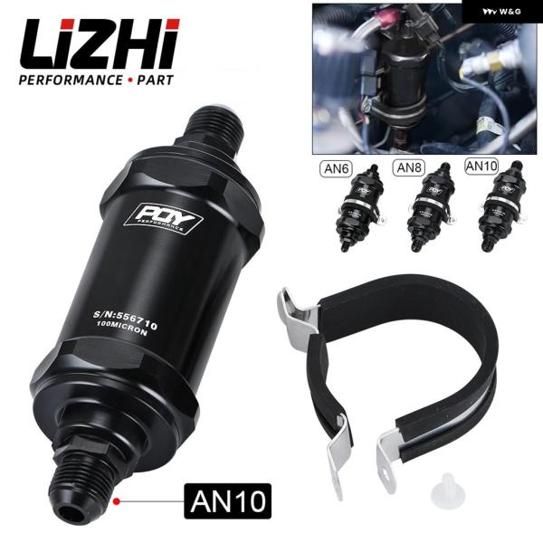 LIZHI RACING – PQY ブラック AN6 / AN8 / AN10 インライン燃料 フィルター E85 エタノール 100ミクロン ステンレス エレメントとPQY ステッカー 付き