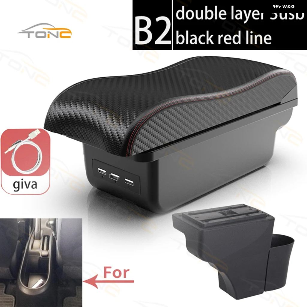日産 ノート アームレスト ボックス 2015~2020年式 日産 ノートX カー アームレスト インナー カスタム USB充電式カーアクセサリー - B2 Red line 3 USB