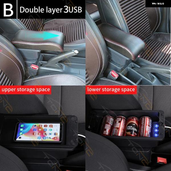 日産 ノート アームレスト ボックス 2015~2020年式 日産 ノートX カー アームレスト インナー カスタム USB充電式カーアクセサリー - B3 Black line 3 USB