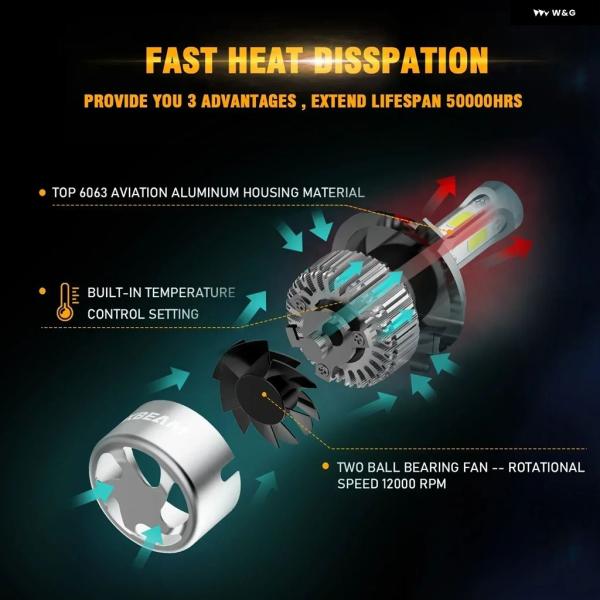 72W 8000LM 車用LED ヘッドライト バルブ H7 H1 H3 9005 9006 9012 COB オート ヘッドランプ カーライト 8000LM 6500Kシリーズ F-S2 - H3