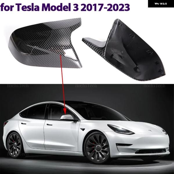 カーボンパターンブラックサイドミラー カバー キャップTESLA MODEL 3 2017 – 23