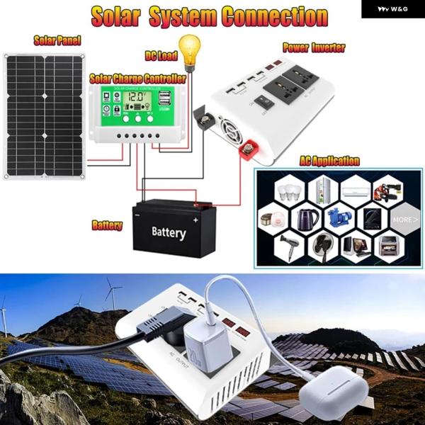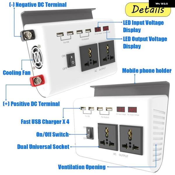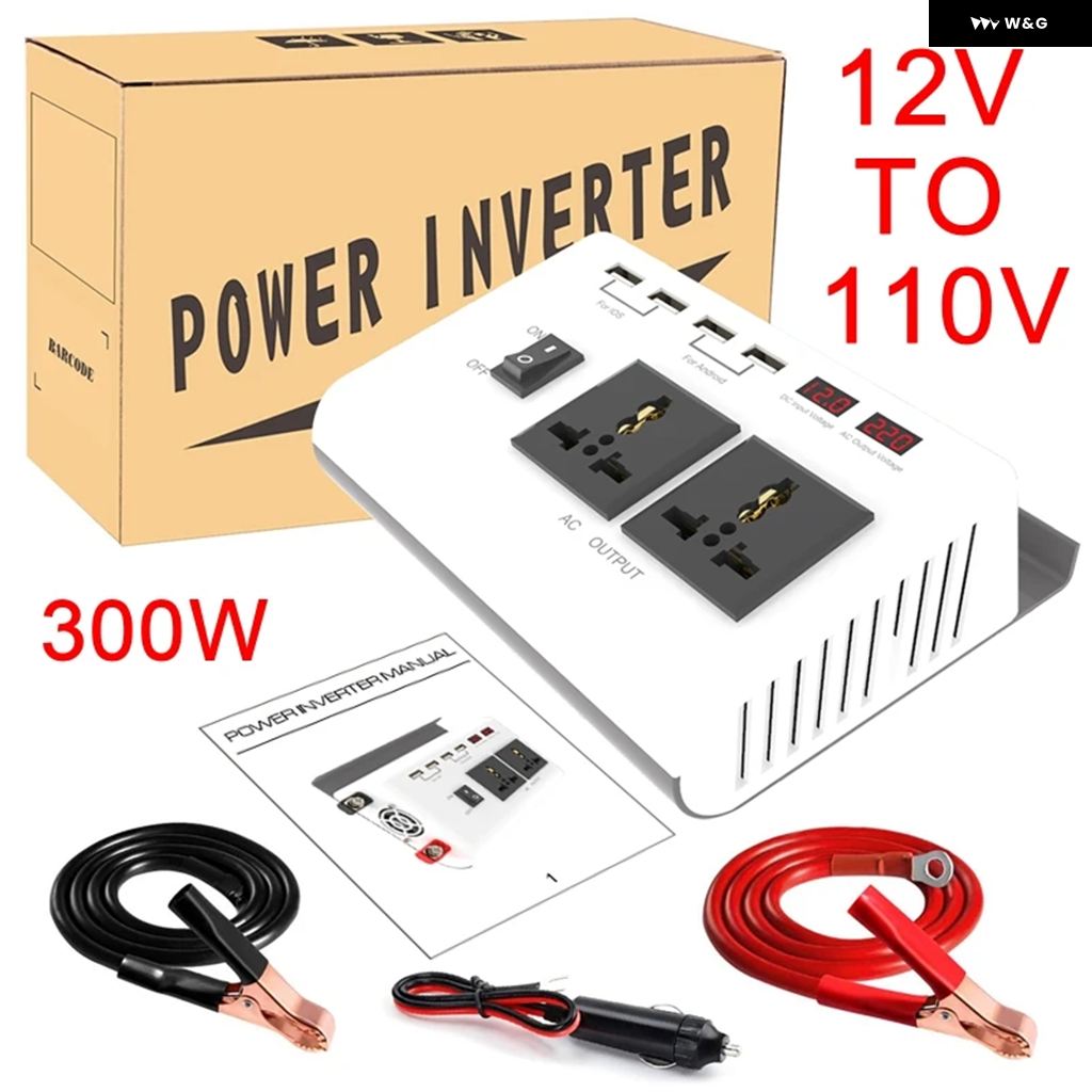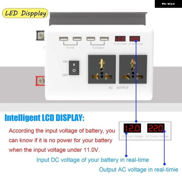 DC 12V AC 110V / 220Vへ 正弦波インバーター300WポータブルパワーインバーターデュアルバッテリーLCD ディスプレイ 電圧変圧器