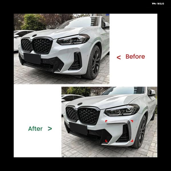 フロントライト フレーム カバー バンパー トリム スポイラー BMW X3 X4 G01 G02 MスポーツLCI 2022 2023 + カーボン