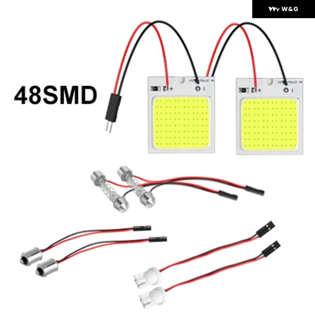 2個 パネル LED ドーム読書灯マップランプ COB 18 24 36 48SMD 車内ライト自動電球 C5W フェストゥーン BA9S T4W T10 LED アダプター - 48SMD