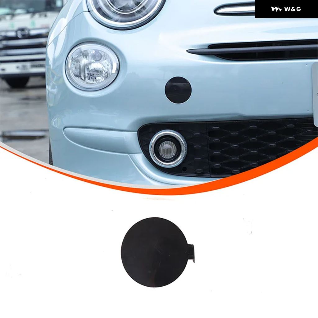 ABS 黒 フィアット 500 2016-2024 フロントリア牽引フックカバー テールトレーラーキャップ トリム カーアクセサリー - front