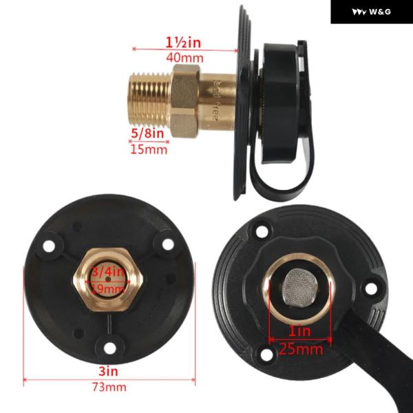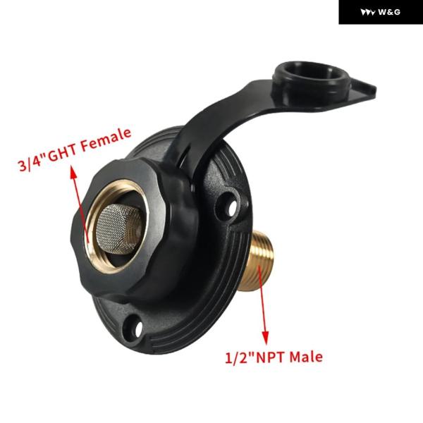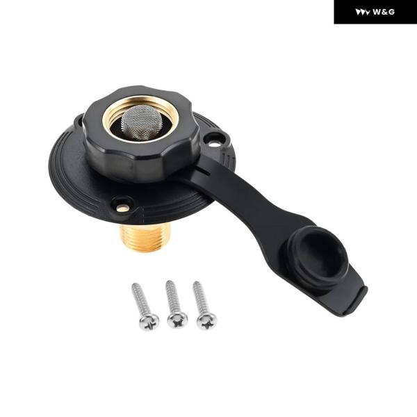 RV 水インレット接続市水注インレットフランジ真鍮チェック バルブ 付き RV ウォーターホースコネクタ 1/2インチ NPT オスキャンピングカー - black