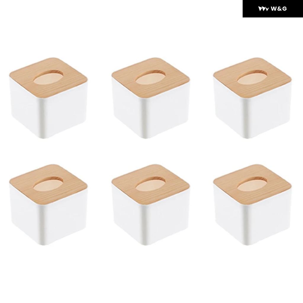 6X 正方形ティッシュ ボックス ティッシュ ボックス 木製蓋付き ミニ木製ティッシュ ボックス - white