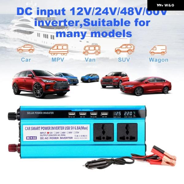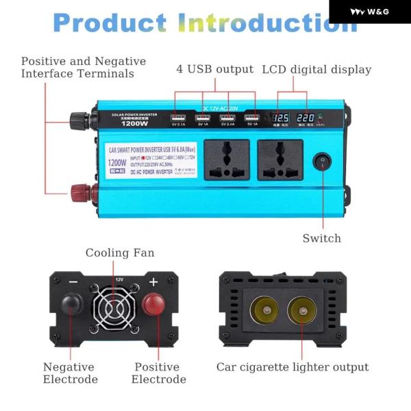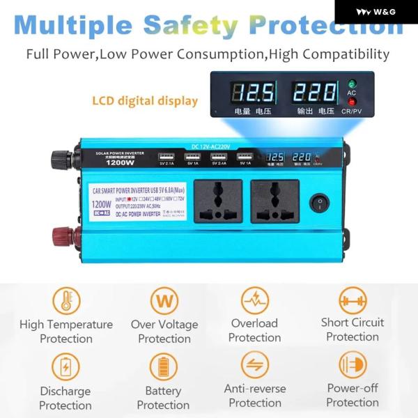 1200ワット カーインバーター ソーラー ダブル LCD ディスプレイ 4USB インバーター電源電圧コンバータ変圧器 DC48V AC 220V