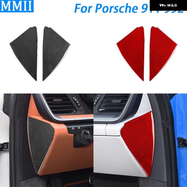 シェポル 911 992 2019-2024 カーボンフロントスロット ダッシュボード サイド パネル 装飾 カバー カー インテリア アクセサリー ステッカー - Red Carbon Fiber
