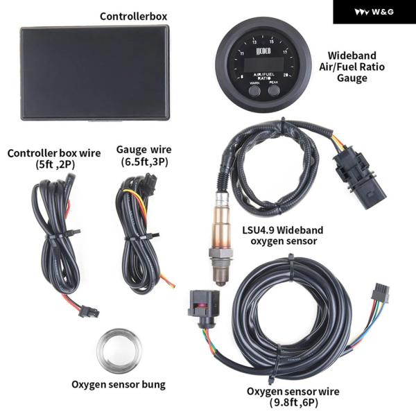 パッケージング 52MM 空燃比計 超薄型ラウンド Sシリーズ LEDデジタル ディスプレイ 広帯域 O2オキシセンサー付き 12V
