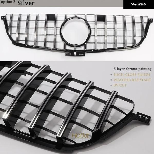 GTR スタイル ABS プラスチック ラジエーター ウォーク フロント バンパー メルセデス ML Mクラス W166 フェイスリフト済み 2012 - 2015 ML63 - Silver