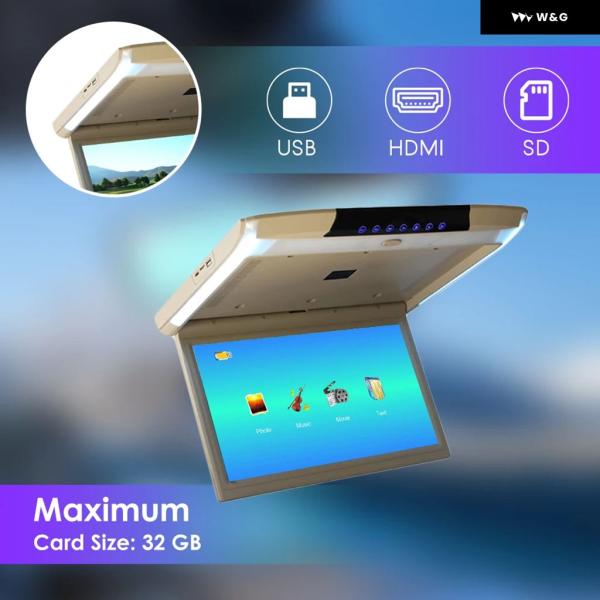 15.6インチMP5車ルーフモニターTVフリップダウン1080PビデオHDスクリーンビデオプレーヤーIPSスクリーンUSB SD HDMI FMビデオ オーディオ 出力入力 - Beige