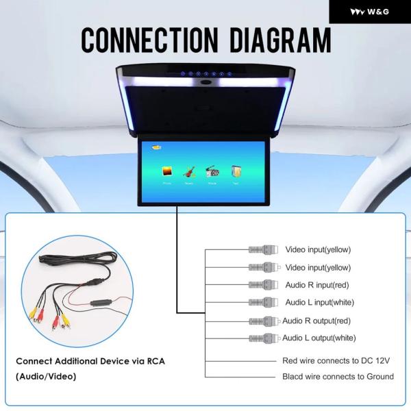 15.6インチMP5車ルーフモニターTVフリップダウン1080PビデオHDスクリーンビデオプレーヤーIPSスクリーンUSB SD HDMI FMビデオ オーディオ 出力入力 - Black