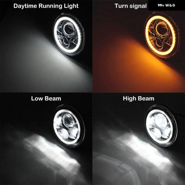 カーアクセサリー黒 LED ヘイロー 7インチ ヘッドランプ ジープ ラングラー JK TJ 7インチ LED ヘッドライト アセンブリ LADA NIVA アーバン