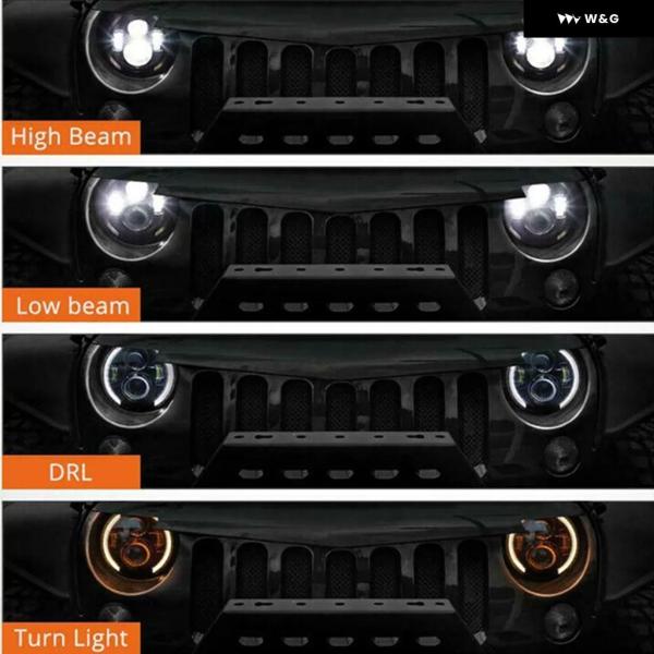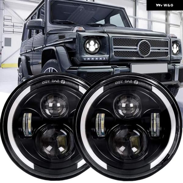 カーアクセサリー LED 7インチ ヘッドライト ランドローバー ディフェンダー 90 110 LADA 4X4 NIVA 12V DRL アンバーウィンカー エンジェル