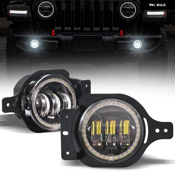 2個 4インチ フォグランプ ジープ ラングラー JL 2018 + エンジェルアイズ LED フォグランプ 30ワット 取付ブラケット 付きウィンカー フォ