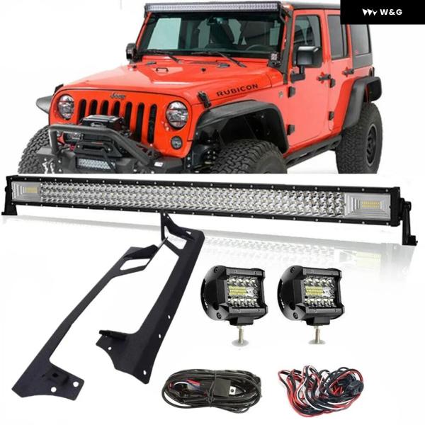 カーアクセサリー TIR-ROW 52インチ 700ワット LED ワークライトバー フォグランプ ルーフ 取付ブラケット 付き ジープ ラングラー JK 07-1
