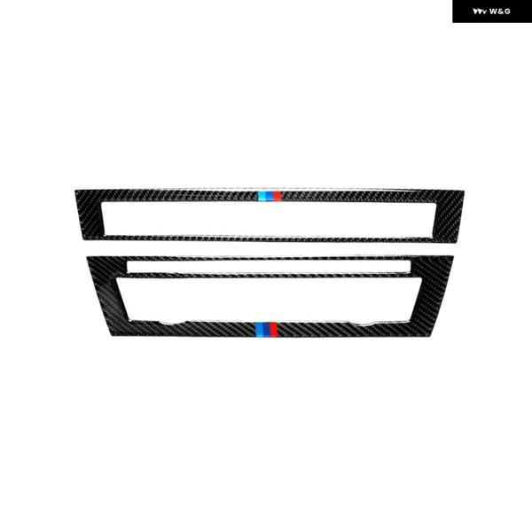 BMW LHD RHD 車カーボン インテリア CD AC エアコン コントロール パネル フレーム カバー トリム ステッカー 5シリーズ F10 F18 11-2017 - With Color 2PCS