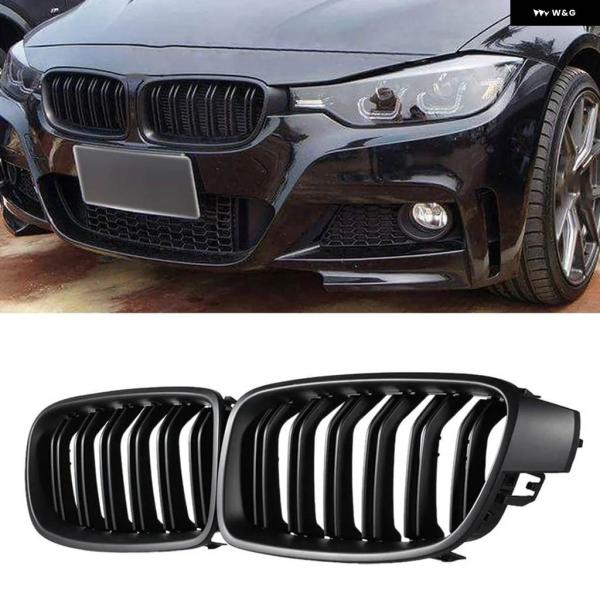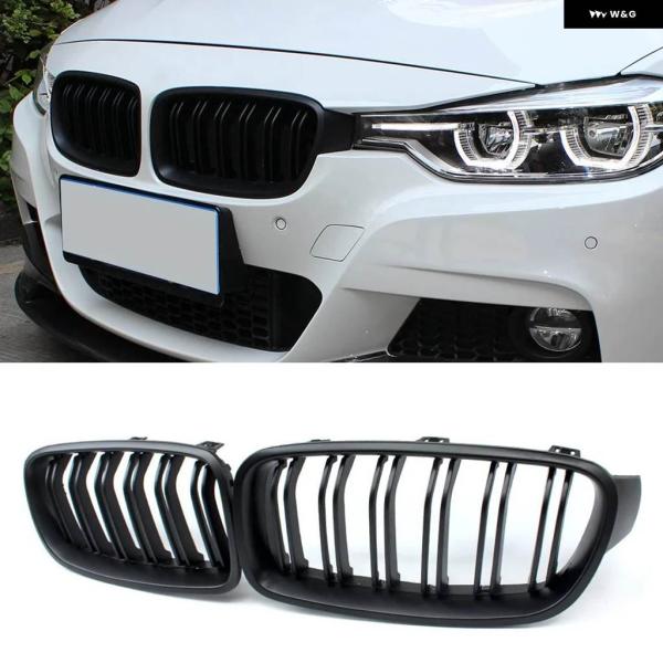 BMW F30 グリル フロントフードキドニーグリル 3シリーズ F30 F31 F35 2012-2018 ダブルスラットマットブラックグリル 2個セット