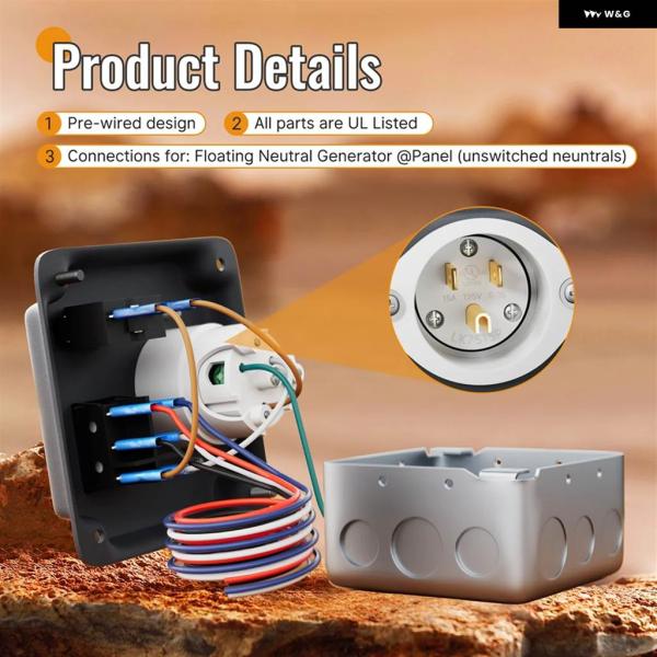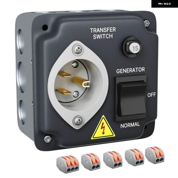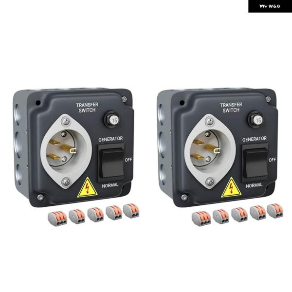 ジェネレーター 転送スイッチ耐候性転送スイッチRV用サーキット ブレーカー付き配線済み 15A 125V USプラグ 2個