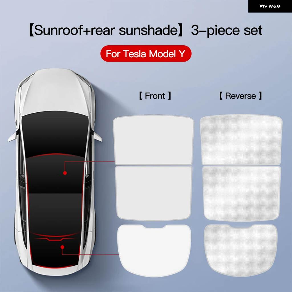 テスラ モデル3 Y 2021-2024 アップグレード アイスクロスバックルサンシェード ガラスルーフサンシェード フロントリア サンルーフ スカイライト - ModelY white 3pcs
