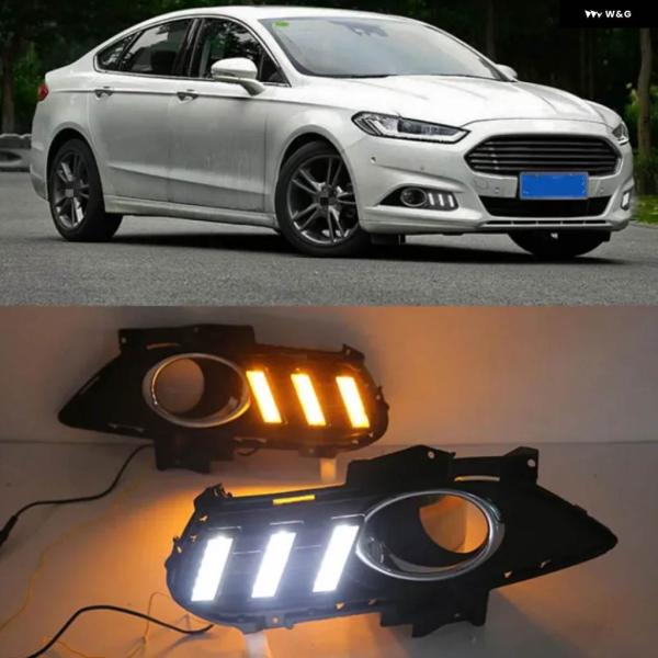 フォード モンデオ フュージョン 2013-16 イエロー ウィンカーリレー 防水 車用 DRL ランプ LED デイタイム ランニングライト