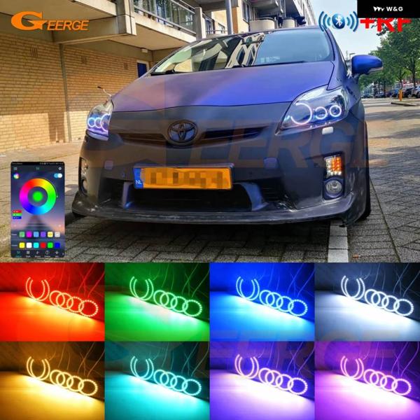 トヨタ プリウス W3 2009 2010 2011 – 2015 BLUETOOTHアプリ RFリモート 超高輝度 マルチカラー RGB LED エンジェルアイキット ハローリング