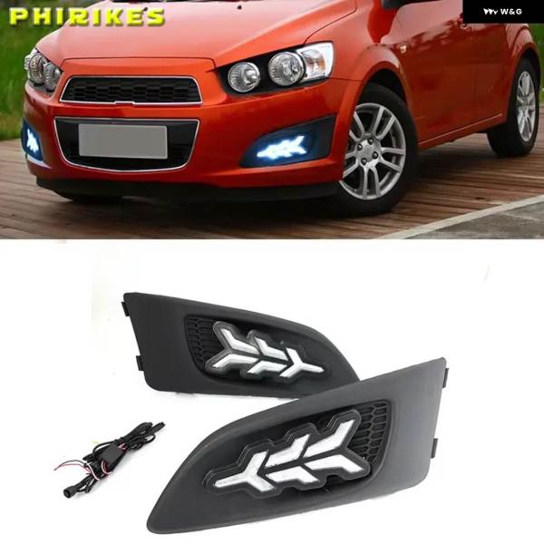 LED DRL シボレー シボレー アベオ ソニック 2011 2012 2013 デイタイム ランニングライト ウィンカー フォグランプ ホワイト イエロー ブルー - White and Yellow