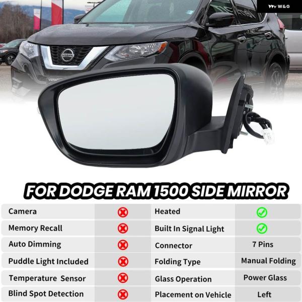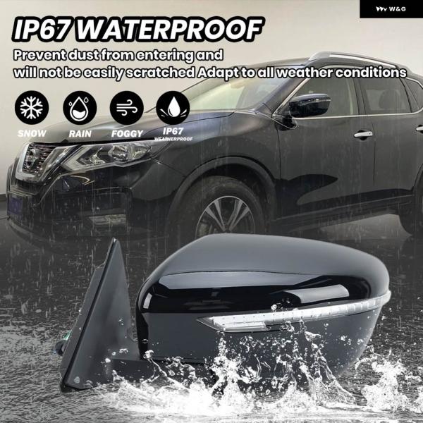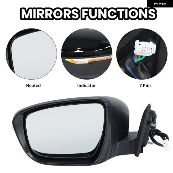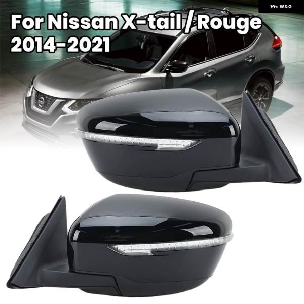 7ピンドアサイドミラー アセンブリ 日産 X-TAIL / ROUGE T32 2014-2021 US バージョン グロスブラック ヒーター付きウィングミラー アクセサリー