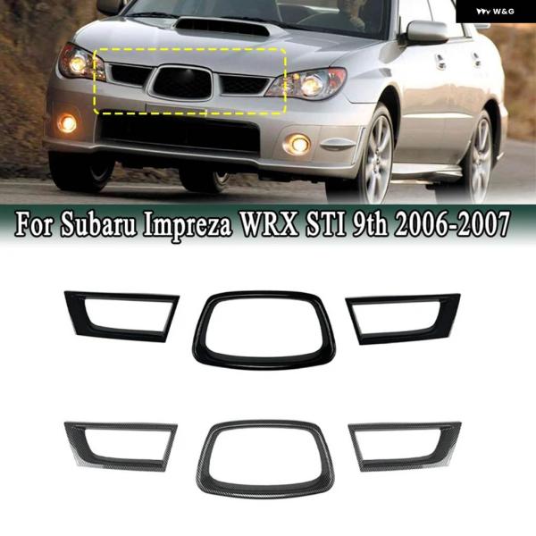 スバル インプレッサ WRX STI 9代目 2006-2007年式 フロント ラジエーター グリル メッシュデコレーション ステッカー エアベント スポイラー リング DIY - Carbon Black