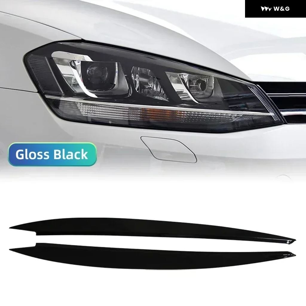 車用 ヘッドライト アイブロウカバー トリム ABS カーボン 目を引く VW ゴルフ 7 VII GTI GTD R MK7 2013-2017 - Gloss Blcak