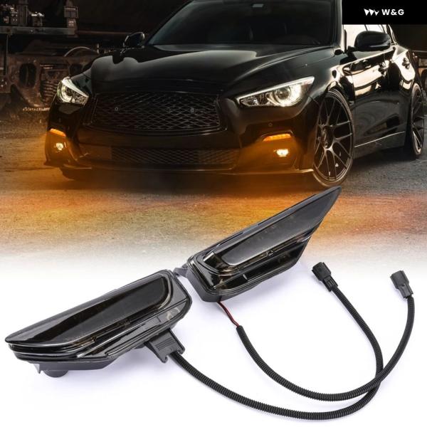 フロント フォグランプ ウィンカーライト インフィニティ Q50 スポーツモデル 2014-2019 流れる点滅 アンバー LEDライト 261304GA0A 261354GA1A