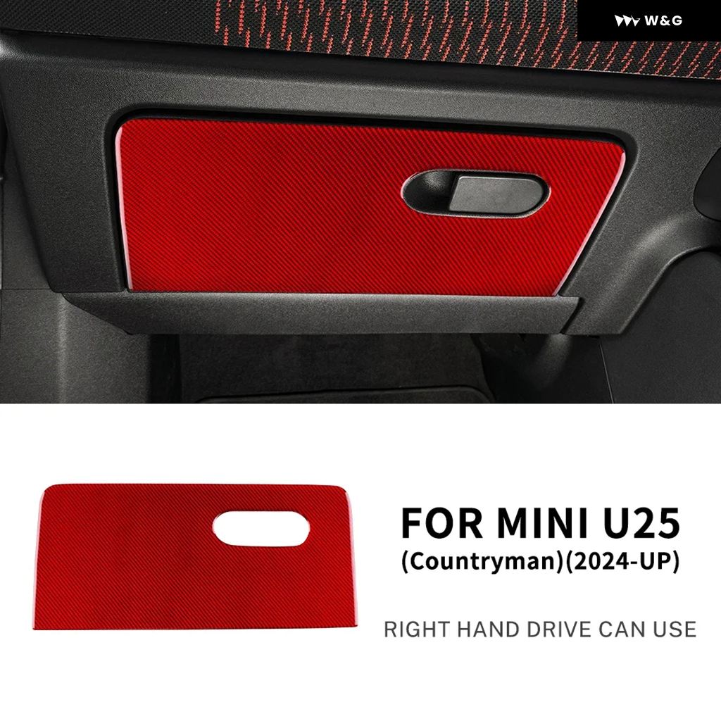 MINI COOPER COUNTRYMAN U25 2024 2025 車用副パイロット用 収納 ボックス パネル リアルソフトカーボン ステッカー 内装 トリム アクセサリー - RHD red