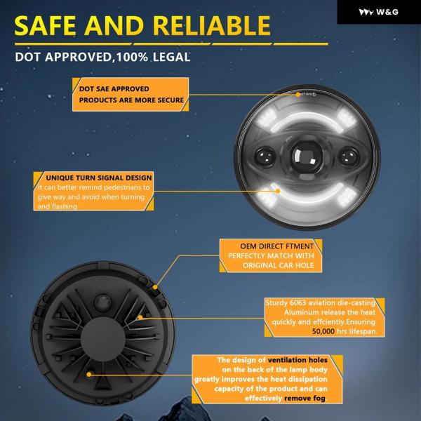 R3 7インチ ラングラー ヘッドライト ジープ ラウンド ヘッドライト オフロード ヘッドライト H4 240W 140000LM 6000K 3000K 24V - 2pcs