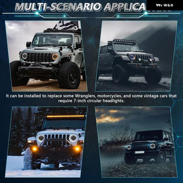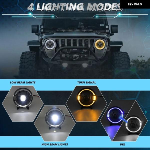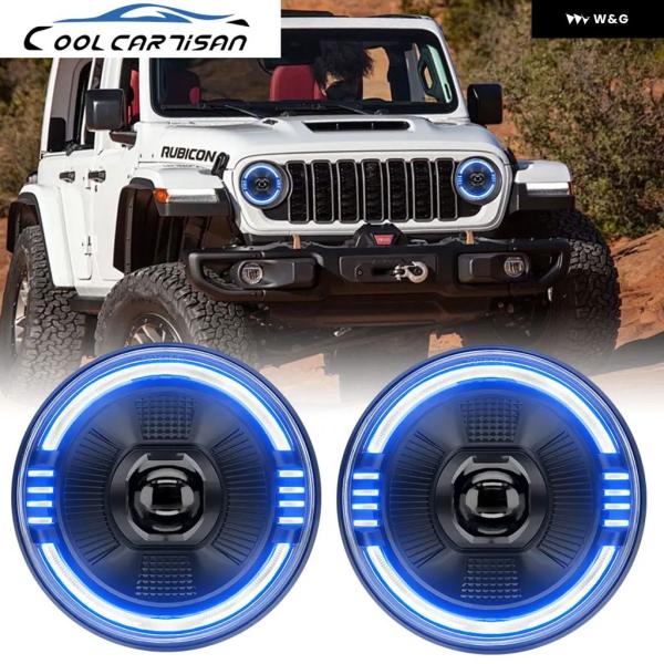 7インチ LED ライトハウスプロジェクター レンジャー ラウンドエンジェルアイ ブルー ヘッドライト H4 12V 24V オフロード 4X4 ハーレー ダビッドソン - 2pcs